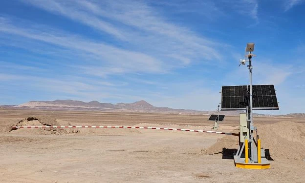 Installation of an autonomous solar Smart Barrier system for vehicle control at the work site.